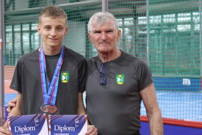 Veľký úspech! Ani nie 15-ročný Štefan Čamaj zo senianskeho atletického klubu SOPKA si na majstrovstvách Slovenska v atletike starších žiakov vybojoval dve medaily. Na februárovom šampionáte, ktorý sa pre absenciu regulárnej atletickej haly na Slovensku konal v maďarskej Nyíregyháze, si vybojoval striebornú medailu za druhé miesto v skoku o žrdi a bronzovú za tretie miesto v skoku do výšky. O žrdi prekonal latku vo výške 300 cm, čím si vytvoril osobný rekord, do výšky preskočil Števo 169 centimetrov a svoj osobný rekord vyrovnal. Zaujímavosťou bolo, že obidve súťaže prebiehali prakticky naraz. „Musel som sledovať, kedy je môj pokus na rade v jednom a kedy v druhom sektore.“ Podľa trénera Jozefa Hudáka (na snímke so Štefanom) to vôbec nebolo ľahké, keďže sa jeho zverenec musel koncentrovať v jednom čase na dve rôzne disciplíny.